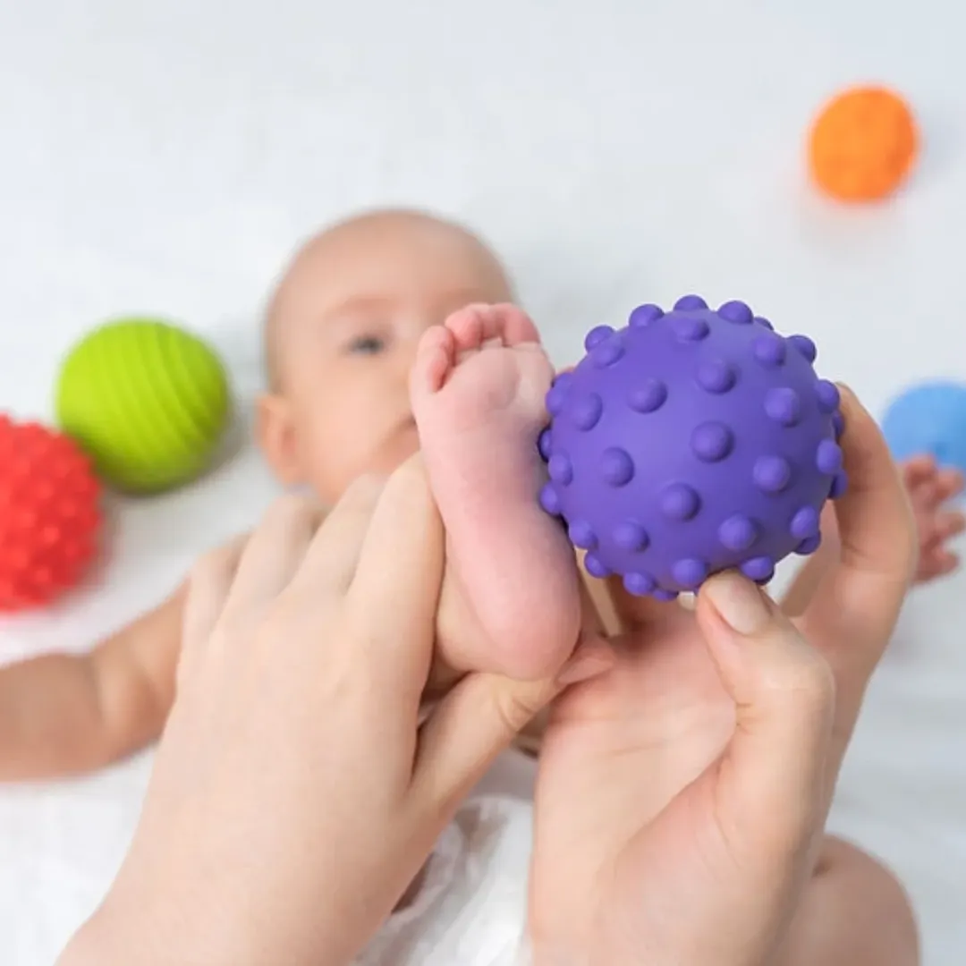 توپ های حسی با تحریک حواس نوزادان به رشد شناختی کوچولوها خیلی کمک میکنن. هر توپ با بافت متفاوتش باعث تحریک حس لامسه کوچولوها میشه.