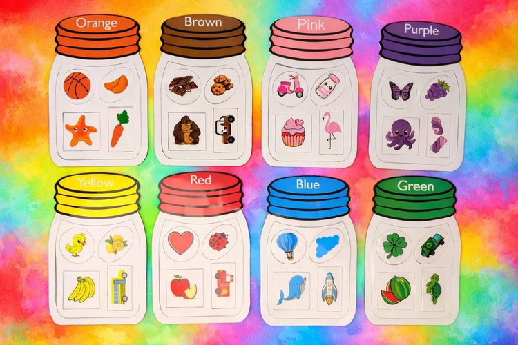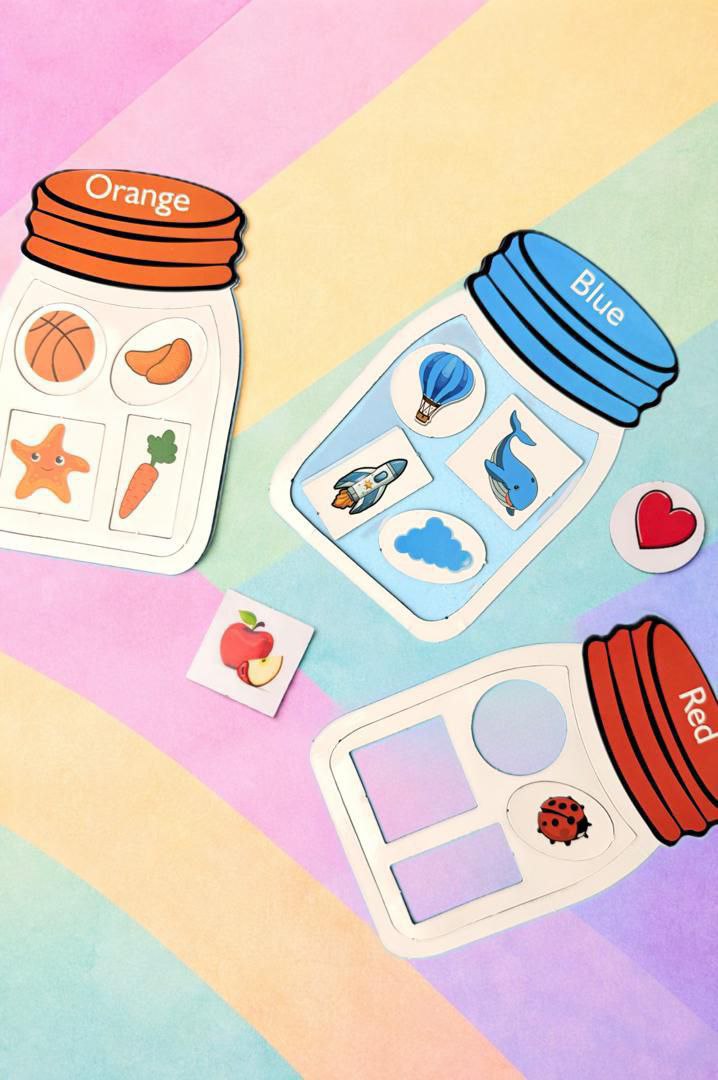 بازی طبقهبندی رنگها : کودک قطعات همرنگ را داخل بطری مخصوص همان رنگ قرار میدهد.
